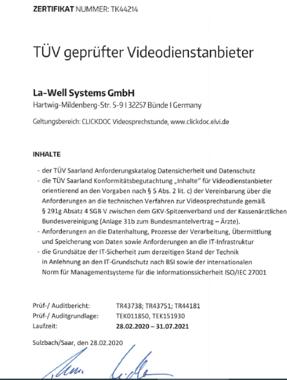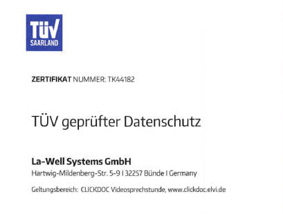 Die Technik der Video-Sprechstunde unter Wahrung des Datenschutzes steht mittels eines zertifizierten Video-Sprechstundenanbieters bereit. Es erfolgt keine Speicherung der Videoaufzeichnung.